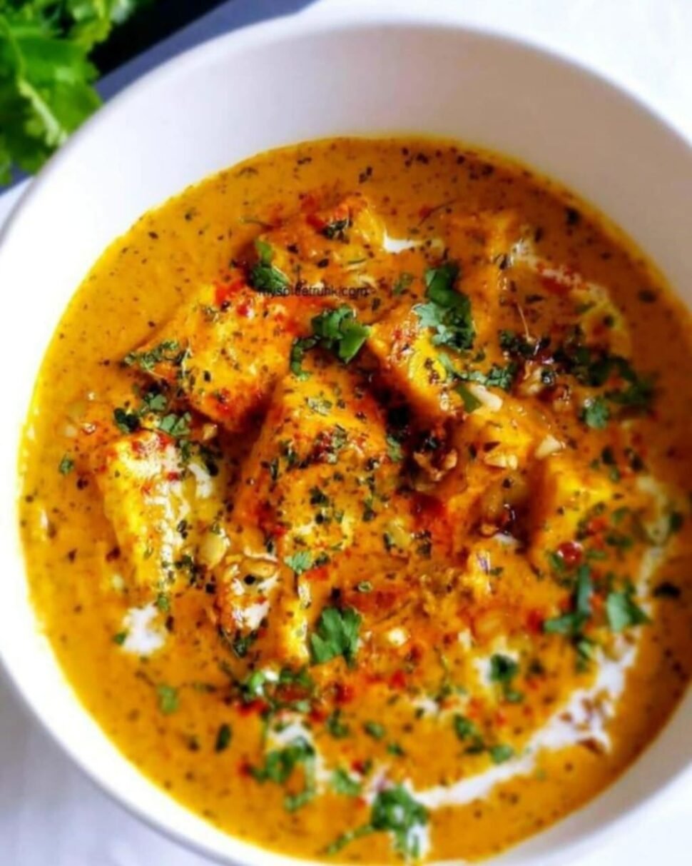 A rich, aromatic paneer curry infused with garlic and fenugreek, offering a perfect balance of slight bitterness and creamy texture.