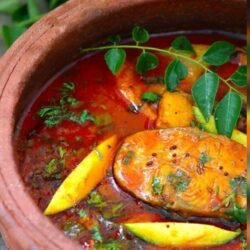 A spicy and tangy fish curry from Andhra Pradesh made with tamarind, chilli, and aromatic spices, known for its bold coastal flavors.